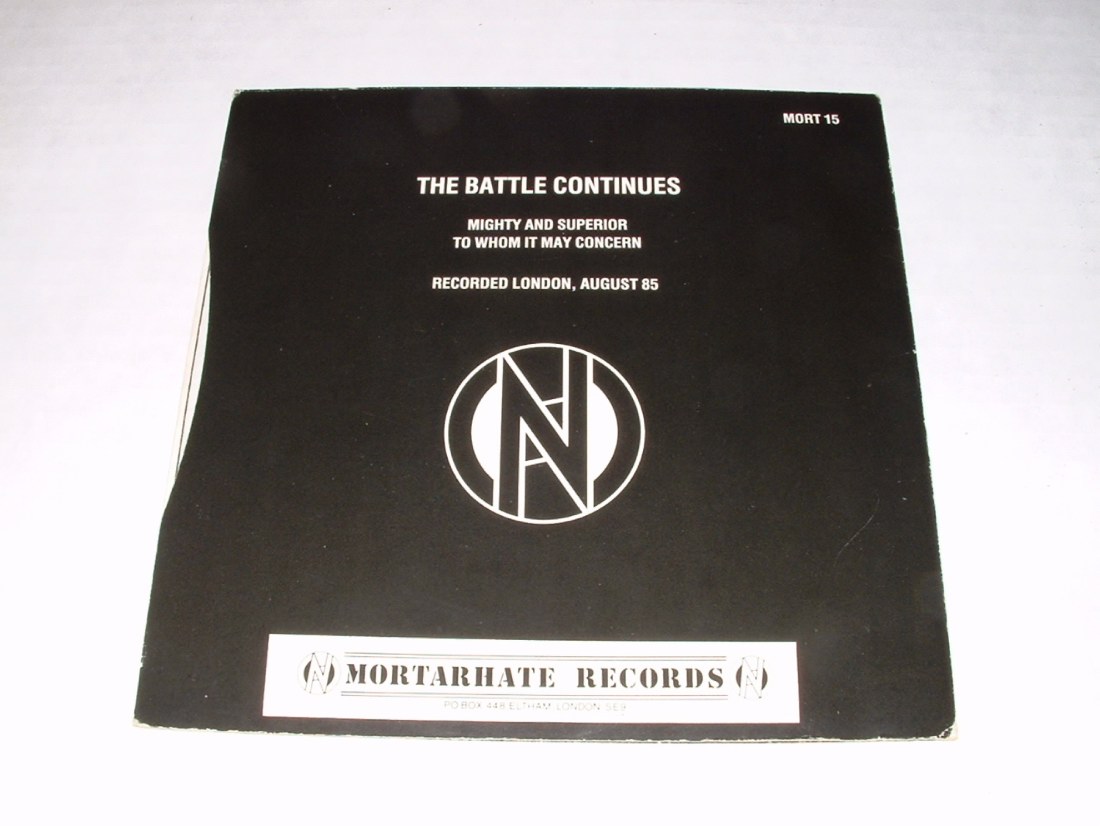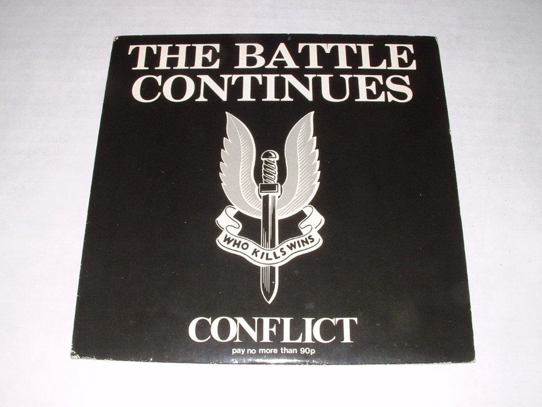 CONFLICT-THE BATTLE CONTINUES 7' 1985 MORTARHATE RECORDS.,INSERT (Black Sleeve)..EX+/EX+